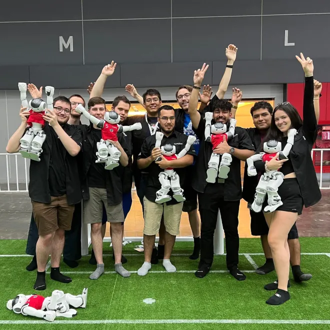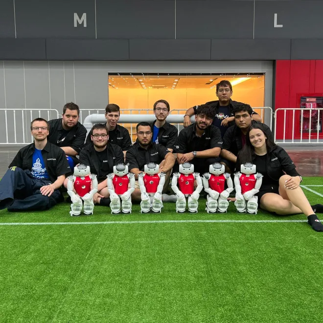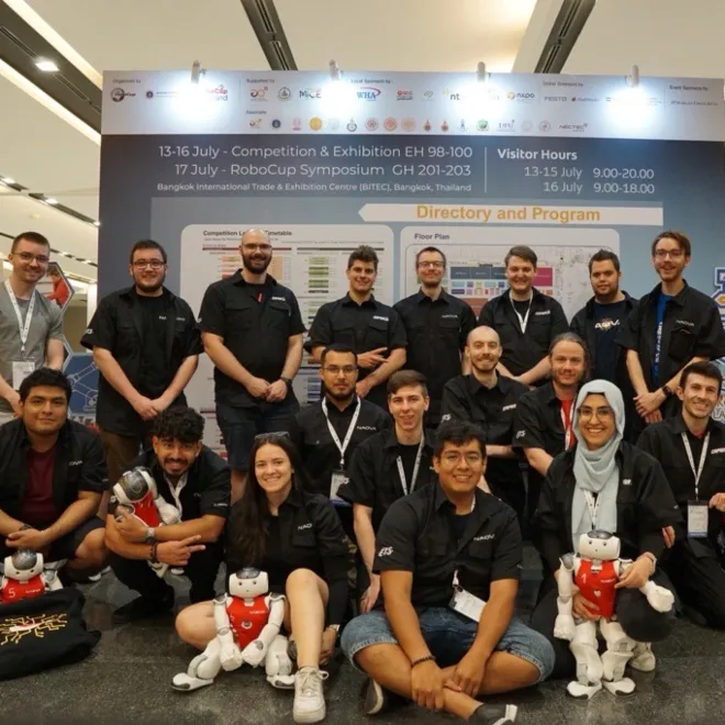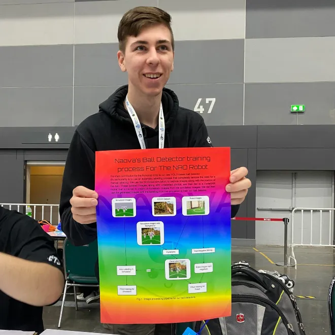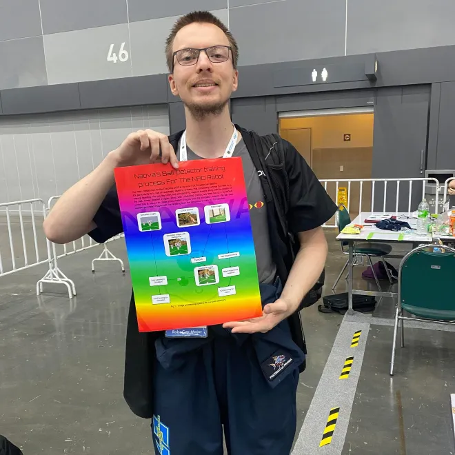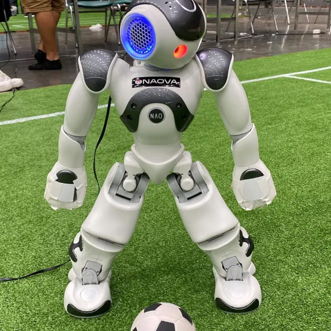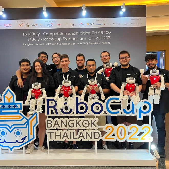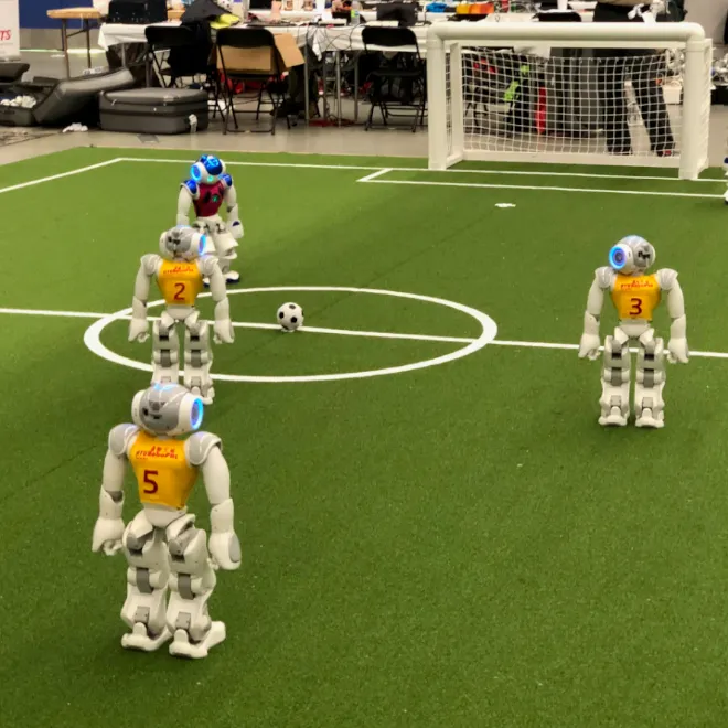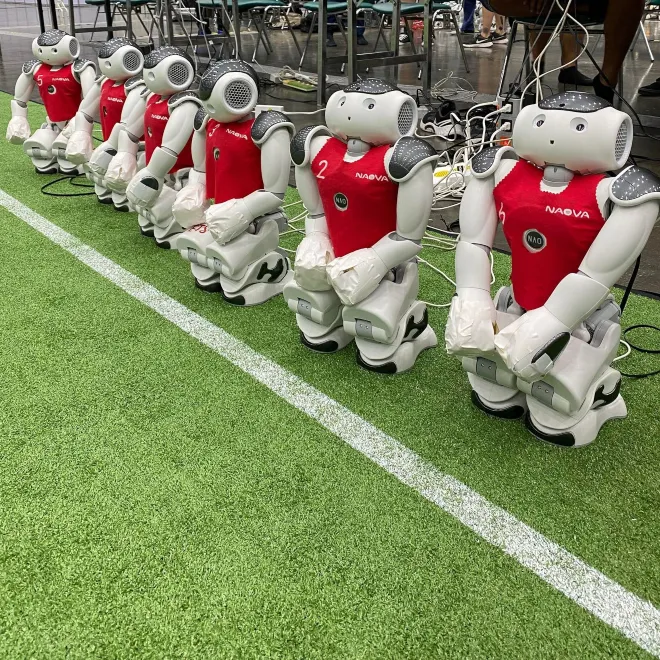 Naova's main mission is to take part in the RoboCup every year. To qualify, each year we develop an innovation in the world of robotics or artificial intelligence and publish a scientific paper on the subject. For the past few years, we've been competing in the Challenger Shield division. Our main objective is to move up a division to compete against the best teams in the world in the Champions Cup division.