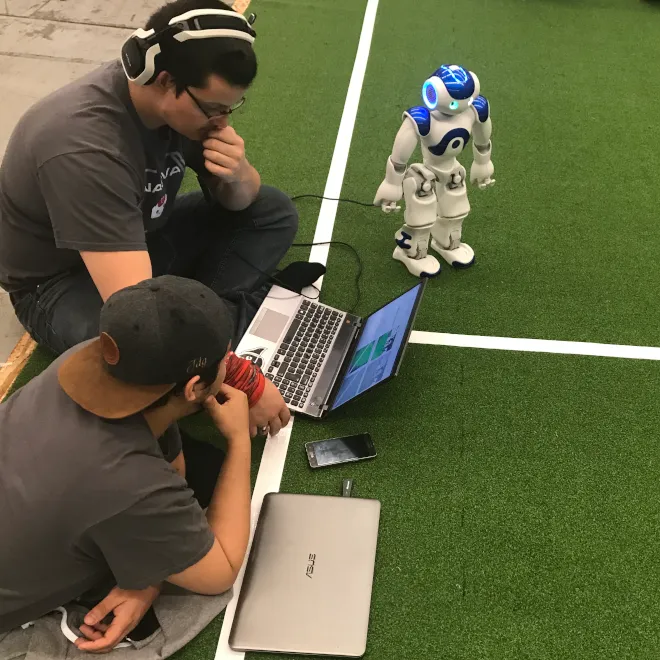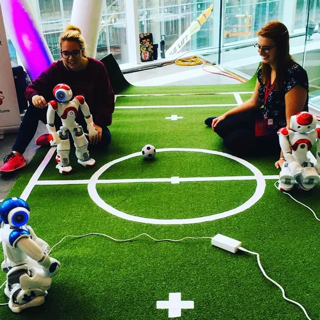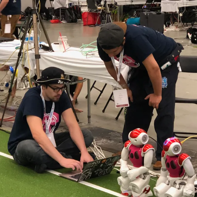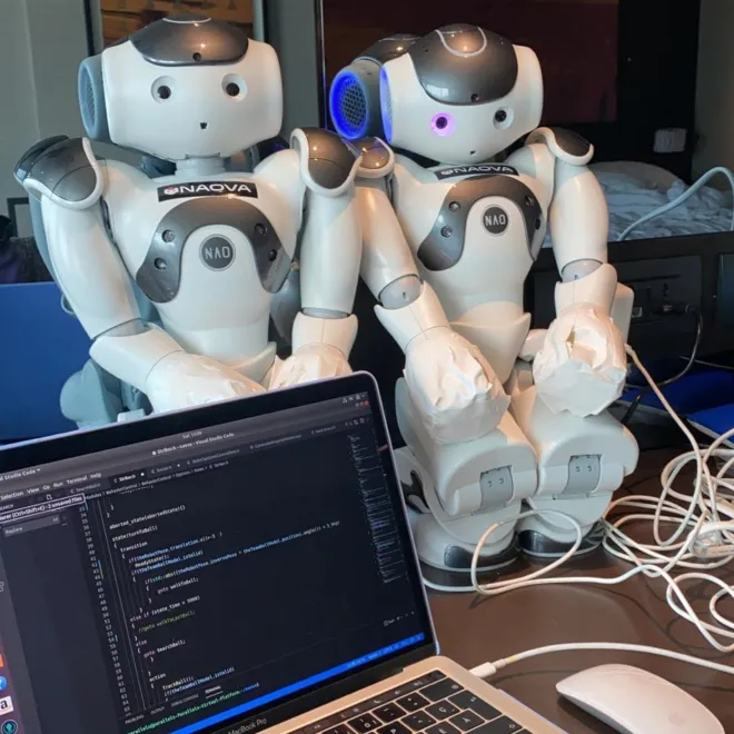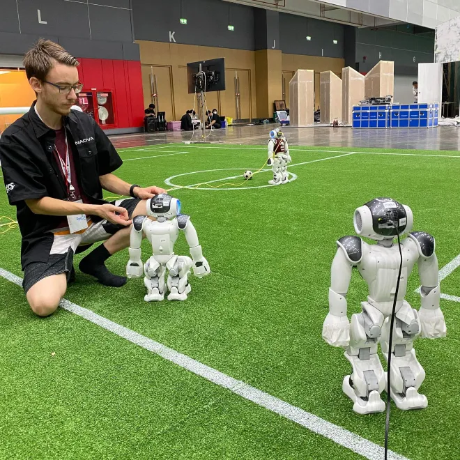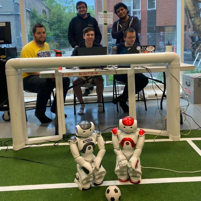 Playing soccer isn’t that simple for a robot. The performance being directly linked to the code dictating their comportment, the team works hard to optimize the performance of our robotic friends.